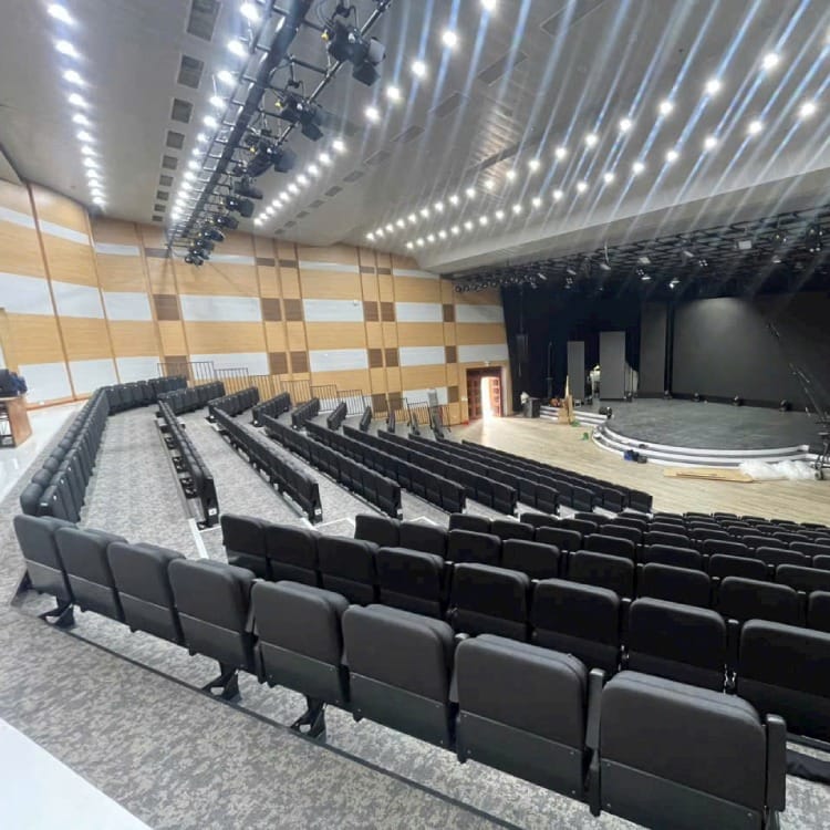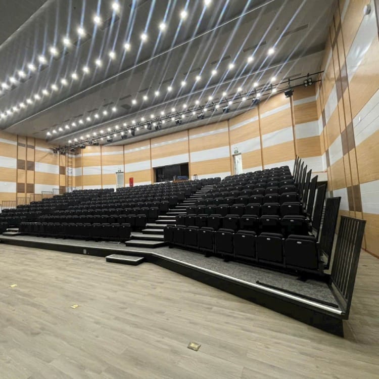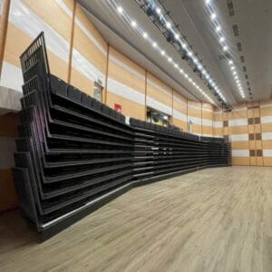 Hệ thống ghế xếp di động được lắp đặt cho dự án này là kiểu hệ thống RSP-FPO-CS01 (Loại cố định vào tường và sàn) của thương hiệu nổi tiếng Kotobuki. Điếm nhấn của dự án lần này là lần đầu tiên tại Việt Nam hệ thống ghế xếp hình cánh cung được hoàn thiện lắp đặt và hoạt động trơn tru.